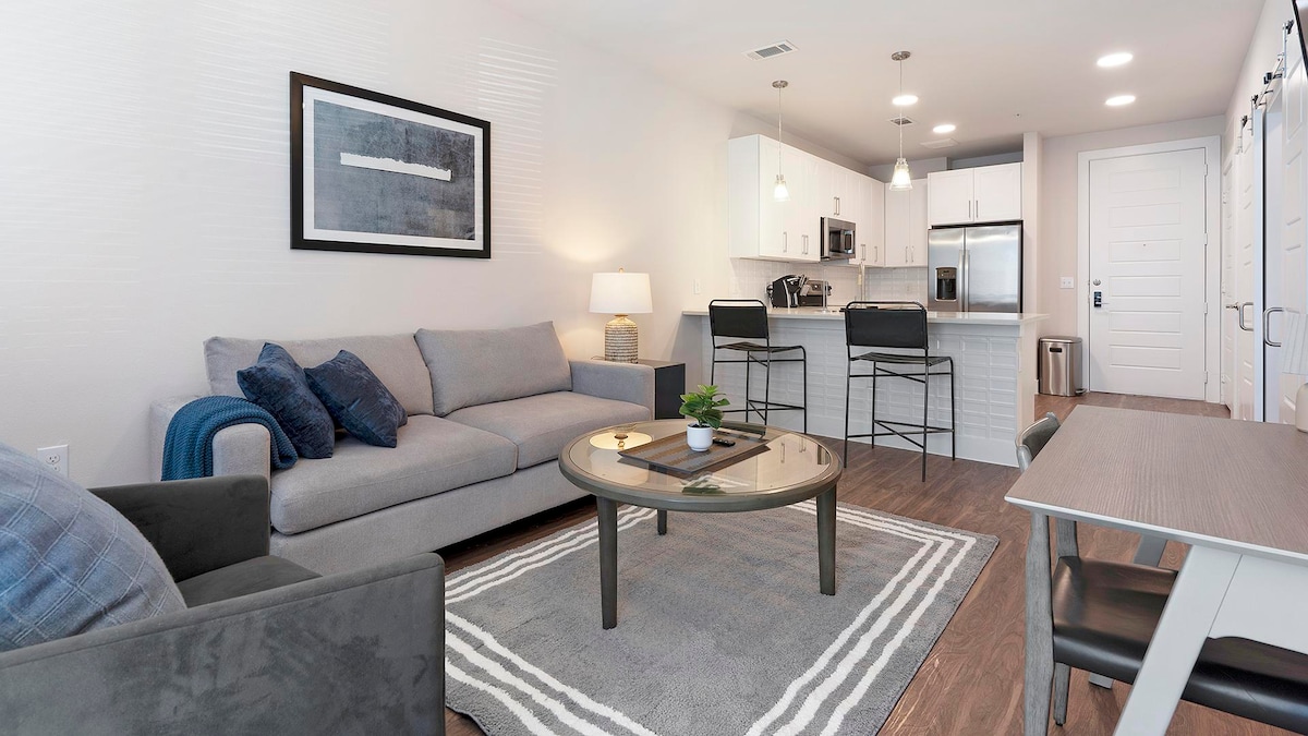 Des logements complètement meublés avec une cuisine et les commodités dont vous avez besoin pour vous installer confortablement pendant un mois ou plus. C'est la solution de rechange parfaite à la sous-location.