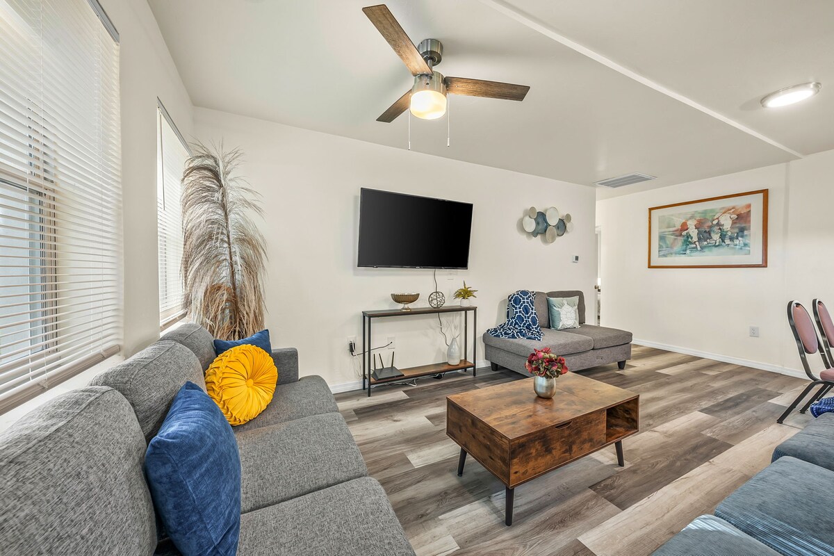 Ce logement d'une chambre peut accueillir jusqu'à quatre personnes, deux lits queen size, une cuisine complète et un salon confortable. Il est situé dans un quartier calme et paisible au cœur de Zephyrhills. Vous êtes à quelques minutes de marche de Zephyr Park et de nombreux restaurants. Le centre-ville a de nombreux événements de fin de semaine, soit sur la rue principale ou au parc. Zephyrhills est situé au centre de Tampa (45 minutes), des plages de Clearwater/St Petersburg (1,5 heure) et dans la direction opposée se trouve Orlando (1 heure).