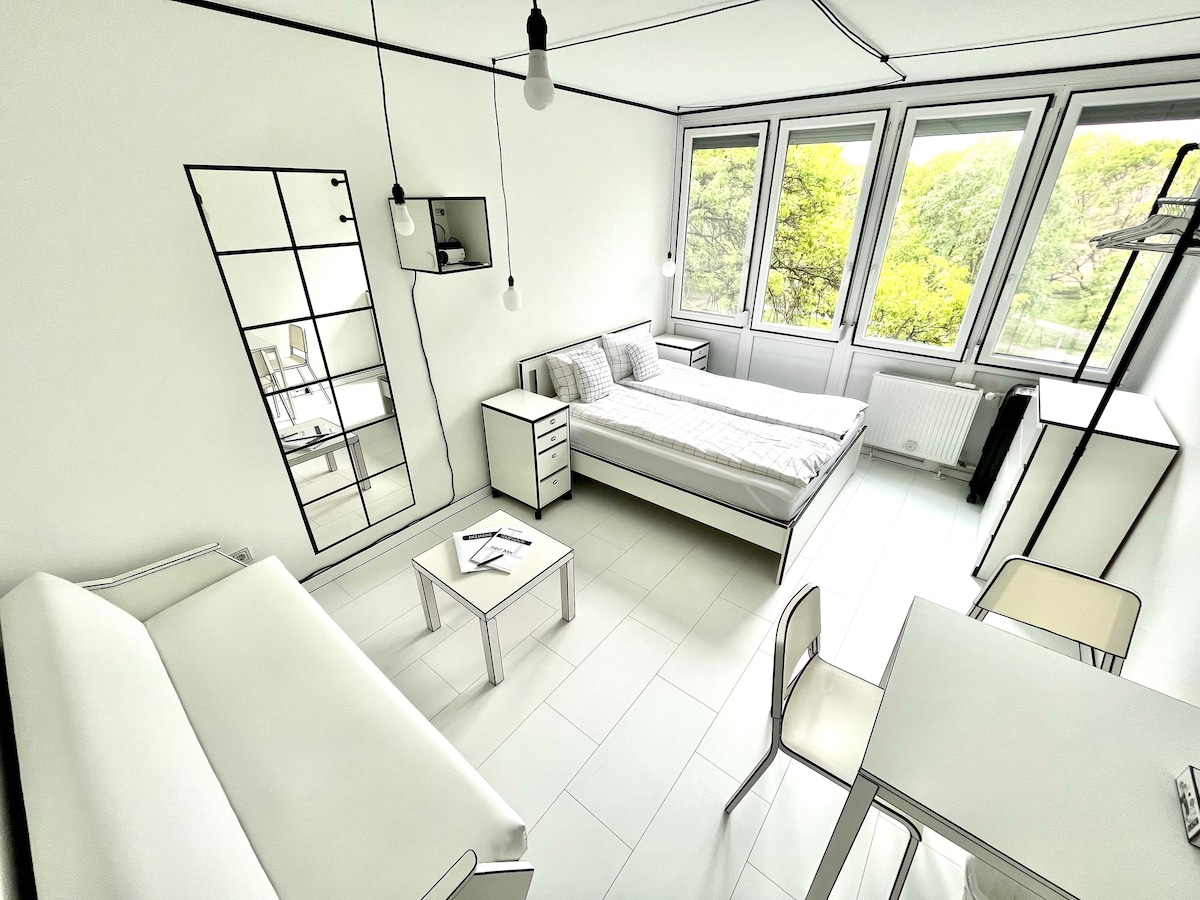 Cet endroit unique a un style qui lui est propre. Studio fraîchement rénové dans le centre de Szekszárd. L'une des meilleures régions viticoles de Hongrie. Confortable, 2 personnes sur un lit queen. Projecteur TV d'environ 3 mètres de diamètre avec accès Netflix, YouTube et câble à la télévision par câble. Douche élégante et cuisine avec équipements. Il s'agit d'un appartement NON-FUMEUR ! ! ! Veuillez noter qu'il est situé au 3e étage et qu'il n'y a pas d'ascenseur. Stationnement gratuit en soirée devant l'immeuble.