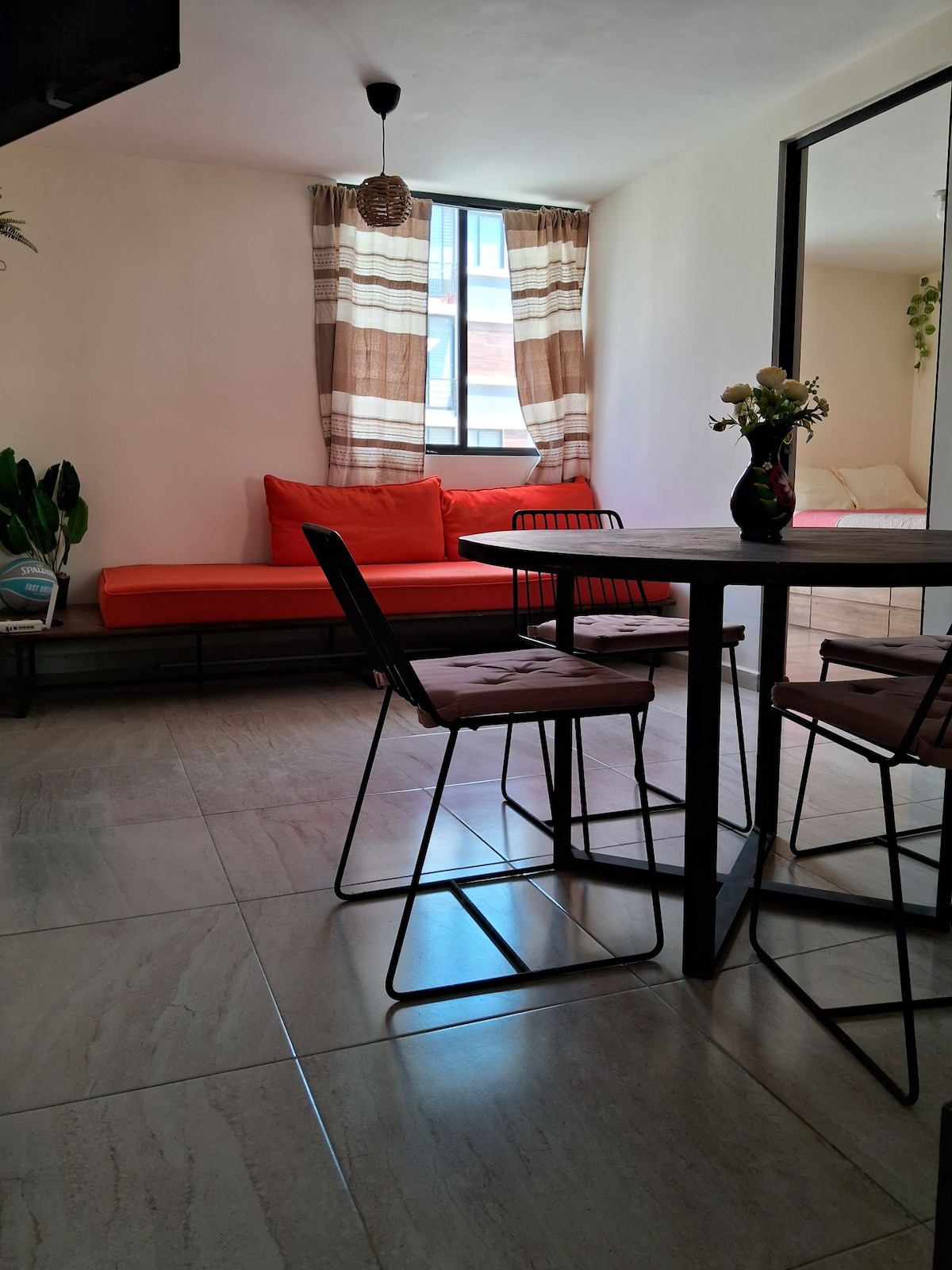 Profitez de cet appartement moderne, entièrement équipé avec tout le confort pour passer le meilleur séjour. Fractionnement avec surveillance, parking gratuit, internet WIFI. Détecteur de fumée. deux chambres avec placards, salon avec télévision et bar, cuisine avec réfrigérateur, cuisinière, cuisine complète et lave-linge. Salle à manger. Salon. EXCELLENT EMPLACEMENT, se connecte à la zone industrielle à seulement 5 minutes, Val'quirico à 18 minutes, Zone archéologique de Cholula à 20 minutes.