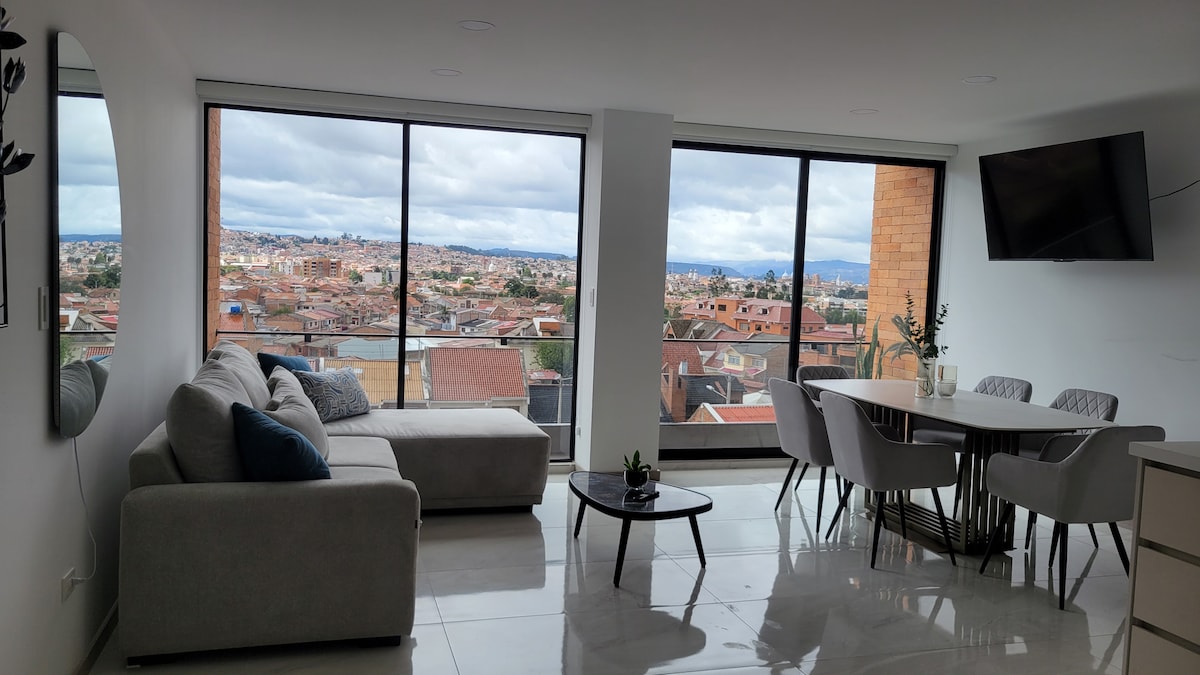 Appartement spacieux, moderne et lumineux à 7 minutes du parc central et de la cathédrale. Situé dans le quartier le plus prisé de la ville, ce penthouse est une oasis fabuleuse et sereine au centre de Cuenca. Il dispose d'une grande chambre avec salle de bain complète, d'un salon lumineux, de toilettes, d'une buanderie, d'une cuisine équipée, d'une terrasse privée et d'une salle de sport. Une superficie de 1500 pi² répartie sur 2 étages pour un plus grand confort des voyageurs. L'emplacement, le confort et les services font de cet endroit la meilleure option à Cuenca.