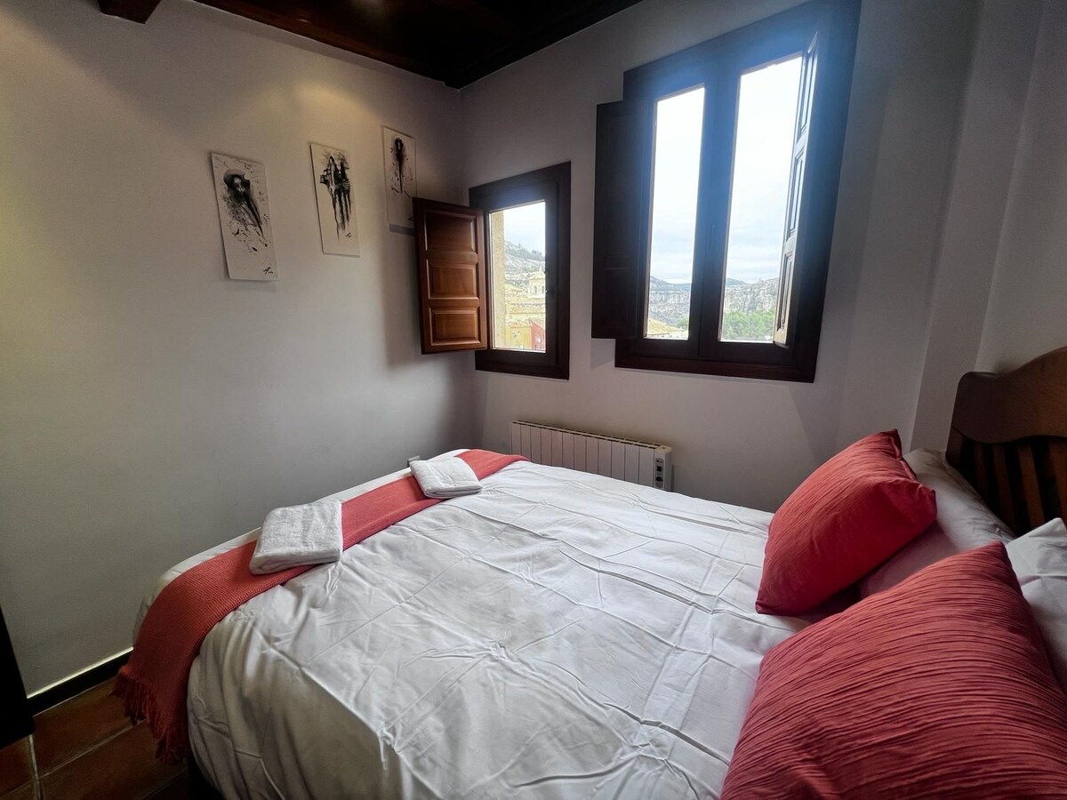Nous lui avons donné ce nom pour la magie de cet hébergement. Étant au premier étage depuis la rue Alfonso VIII, c'est un cinquième étage si on l'observe depuis la rue Santa Catalina, située sur les rives de la Hoz del Huécar, avec des vues spectaculaires des deux chambres à l'imposante Hoz. De 94 m2 avec des plafonds à poutres apparentes, il dispose d'un grand salon/salle à manger et d'une cuisine entièrement équipée, et avec un grand balcon où vous pourrez profiter de toutes les processions et événements de Pâques et des fêtes régionales.