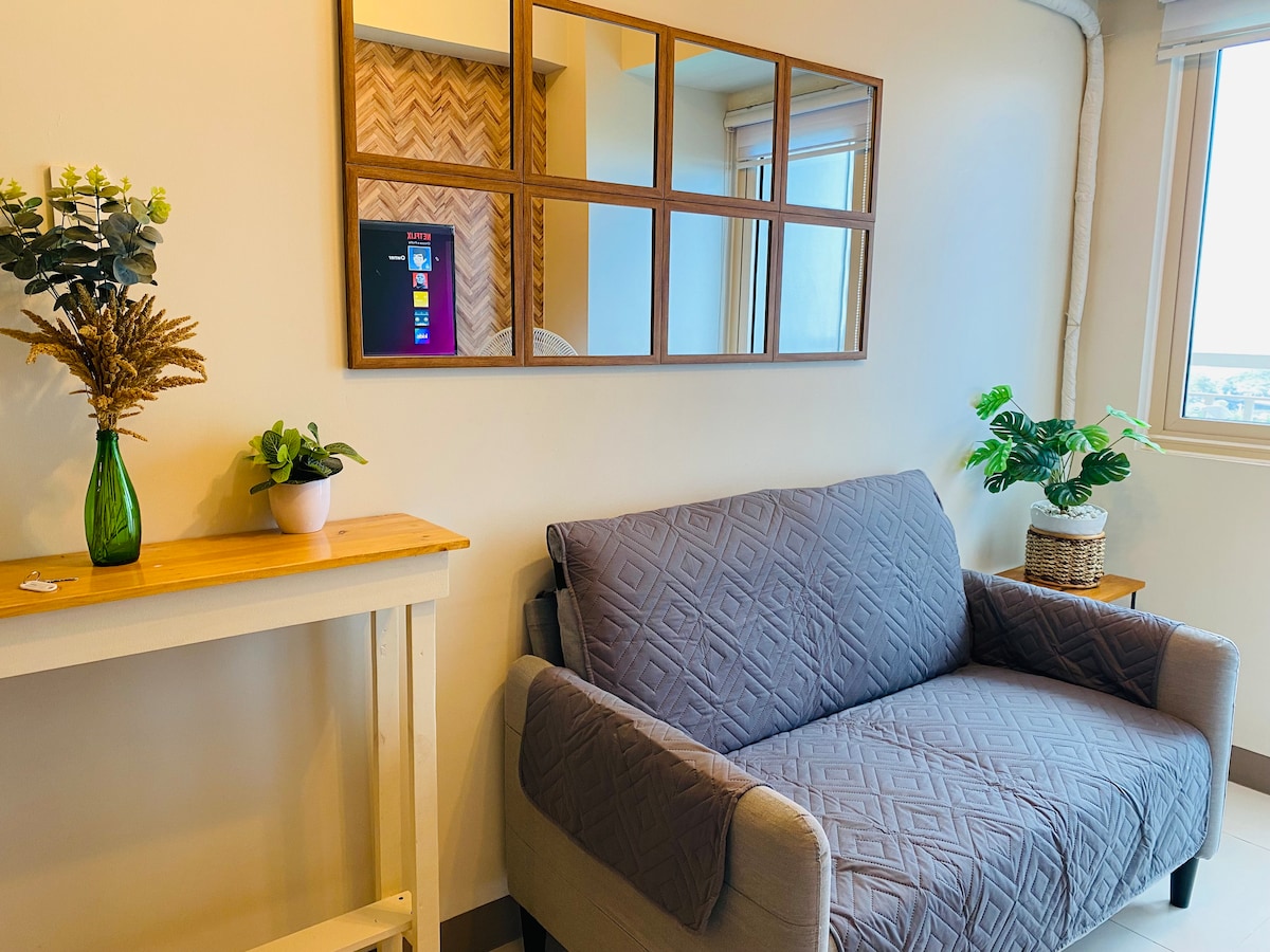 Esthétique, Instgrammable et digne de Pinterest ! Bienvenue dans cette suite confortable d'inspiration bohème située à S Residences, 8e étage-Tour 1, Complexe MOA. En plein cœur de l'action tout en vous donnant un espace pour vous détendre et vous ressourcer. Cette suite est parfaite pour vos besoins de vacances et de travail. Que vous fassiez du shopping chez IKEA, mangiez des plats délicieux, regardiez des concerts à la MOA Arena ou que vous vouliez simplement regarder Netflix et vous détendre, cette suite est exactement ce dont vous avez besoin.