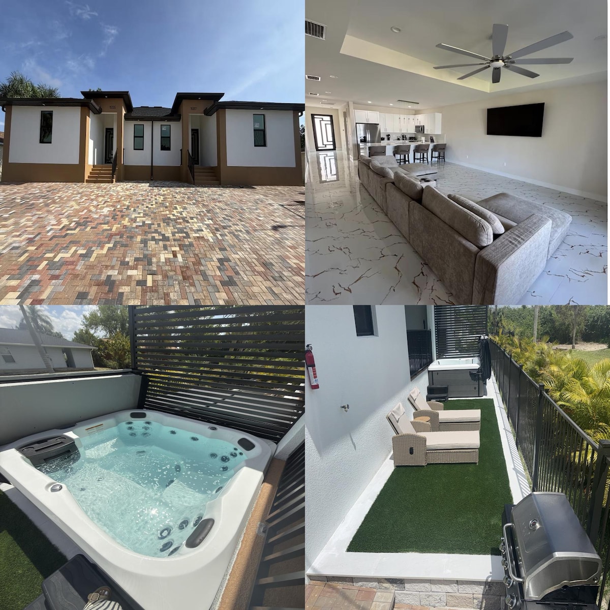 Duplex privé nouvellement construit, avec 4 lits entièrement meublés, 3 salles de bain, à seulement 10 minutes de Sanibel Island et à 10 minutes de Fort Myers Beach. Le deuxième logement est publié séparément et peut être disponible pour des groupes plus importants. Profitez de soirées de détente dans le spa après une journée à la plage ou d'un dîner au barbecue dans votre espace extérieur privé. La maison est magnifiquement meublée avec un tout nouveau décor et tout ce dont vous avez besoin pour un séjour confortable. Situé à proximité des plages, des restaurants, des magasins et des activités de plein air.