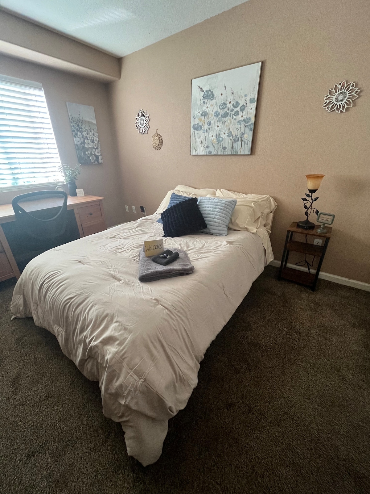 Bienvenue au Mountain View Basecamp ! Cette grande chambre a sa propre entrée et est située dans un quartier calme de l'ouest de Longmont, à seulement 10 minutes à pied du magnifique lac McIntosh. Avec un lit queen size confortable, une baignoire à jets pour deux, une connexion Wi-Fi fiable et des portes-fenêtres menant à un brasero, un hamac et une cour arrière verte, cette suite vous attend pour venir vous détendre.
