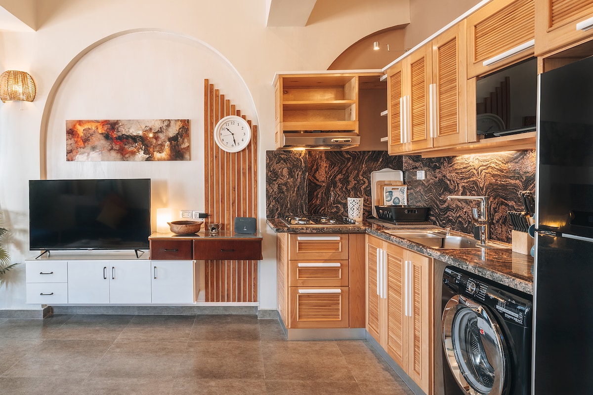 C'est une maison loin de chez vous, parfaitement située entre les montagnes et la mer Rouge - tout simplement magique ! C'est une maison d'une chambre très confortable et spacieuse d'environ 90 mètres carrés. À seulement quelques minutes à pied de la mer Rouge, ainsi que de petits supermarchés, d'une laverie, de restaurants et de bars, cet endroit est parfait pour une courte pause ou un séjour plus long. En tant que nomade numérique moi-même, je l'ai conçu pour qu'il soit parfaitement situé pour les voyageurs travaillant en ligne. J'ai hâte de vous accueillir chez moi :)