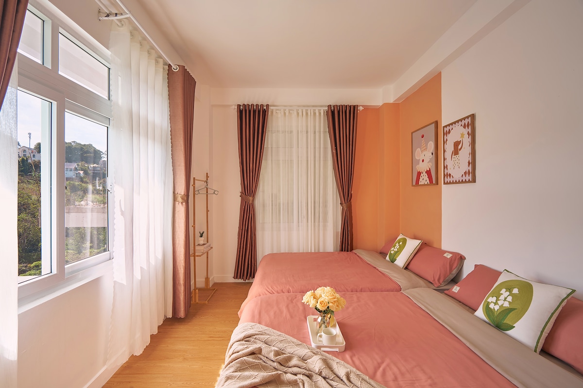 C'est l'une de nos maisons en bois les plus appréciées : une retraite confortable embrassée par la nature. La cabane dispose d'un lit spacieux de 2 mètres de large avec une vue imprenable sur tout le jardin. Les voyageurs peuvent profiter d'un séjour vraiment relaxant, en profitant du cadre paisible et en découvrant le charme authentique de Dalat : des matins calmes, de l'air frais et un jardin en pleine floraison juste devant votre fenêtre.