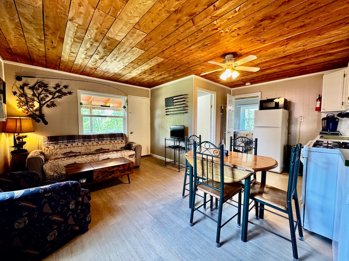 Évadez-vous dans notre cabane isolée où les animaux de compagnie sont les bienvenus, nous appelons Ollies Woolly Bugger. Nous sommes situés à seulement 8 km du parc d'État de Bennett Springs. Le concept d'espace ouvert avec sa belle garniture en cèdre, crée une atmosphère chaleureuse et accueillante. Idéale pour la pêche, la randonnée et passer des moments de qualité avec vos animaux de compagnie, cette cabane est la retraite idéale pour les amateurs de plein air.