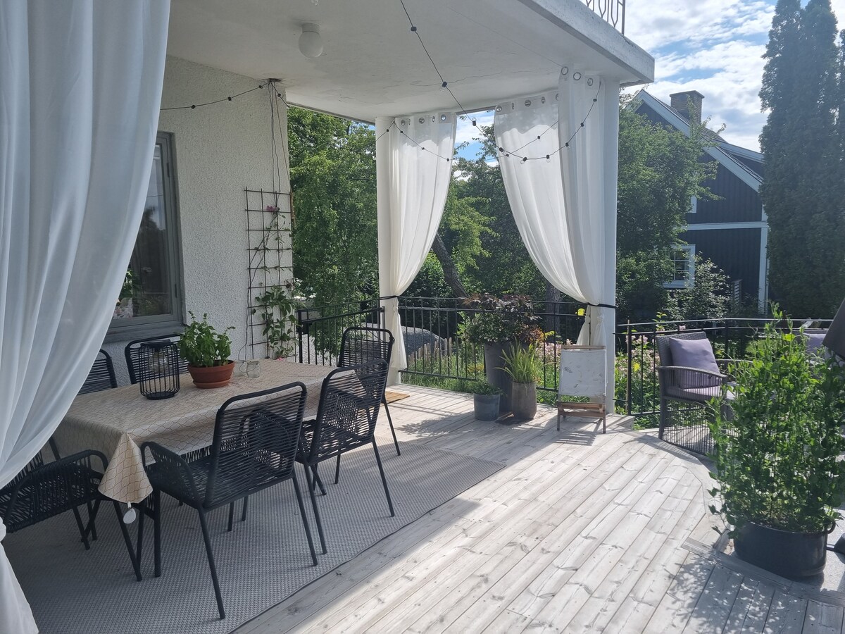 Visitez notre logement près de trois lacs et de la forêt suédoise juste devant la porte d'entrée. Vous vivrez juste à côté de la forêt profonde et des lacs silencieux, mais avec une distance confortable des avantages de la petite ville. Vous vivrez dans votre propre appartement sans perturbation ni perspicacité, mais en mesure de recevoir des conseils et des conseils de l'hôte sur les possibilités de la nature environnante. L'appartement a été récemment rénové et a été équipé d'un canapé-lit neuf.