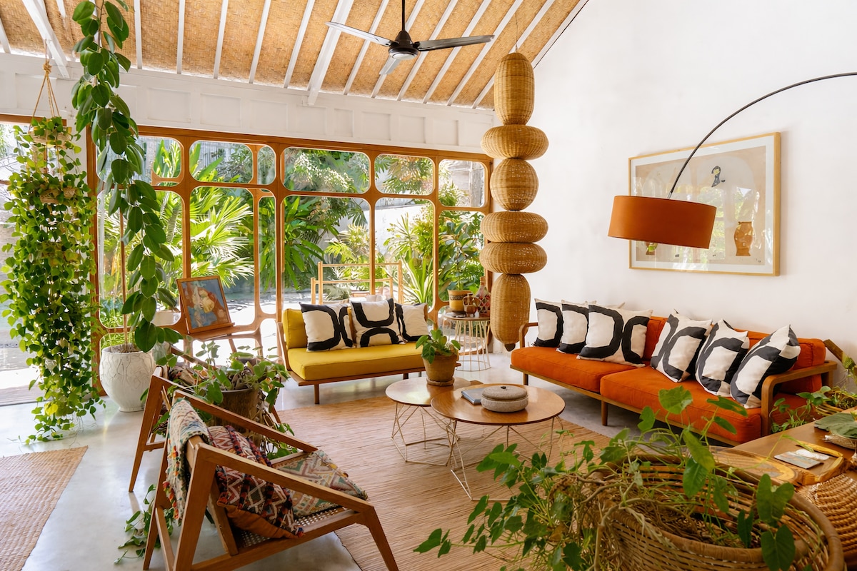 Prenez un bain de soleil autour de la piscine privée de 10 mètres dans la cour luxuriante de cette retraite tranquille. Cette maison combine l'architecture californienne du milieu du siècle avec l'essence tropicale de Bali. Des meubles sur mesure ont été construits et créés sur mesure pour cet espace. REMARQUE GÉNÉRALE : je suis également propriétaire de la propriété voisine. Les réservations pour les deux villas peuvent être effectuées conjointement pour les grands groupes. Veuillez consulter les autres propriétés sous mon profil.