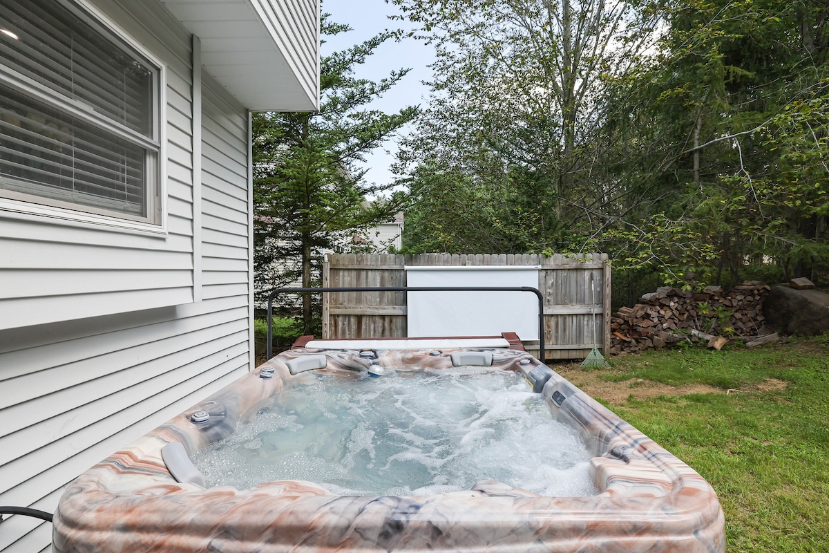 Bienvenue à CozyPoconos Retreat Votre escapade de luxe ultime au cœur des Poconos ! Cette maison offre le parfait équilibre entre charme douillet et confort haut de gamme. Proche des principales attractions. Détendez-vous dans une chambre king-size conçue pour la détente. Éliminez votre stress dans le jacuzzi privé avec vue sur la forêt ou observez les étoiles depuis l'igloo du jardin. La maison est équipée d'équipements modernes, notamment une cuisine gastronomique, une connexion Wi-Fi rapide, des téléviseurs intelligents, une cheminée, une salle de jeux et plus encore.
