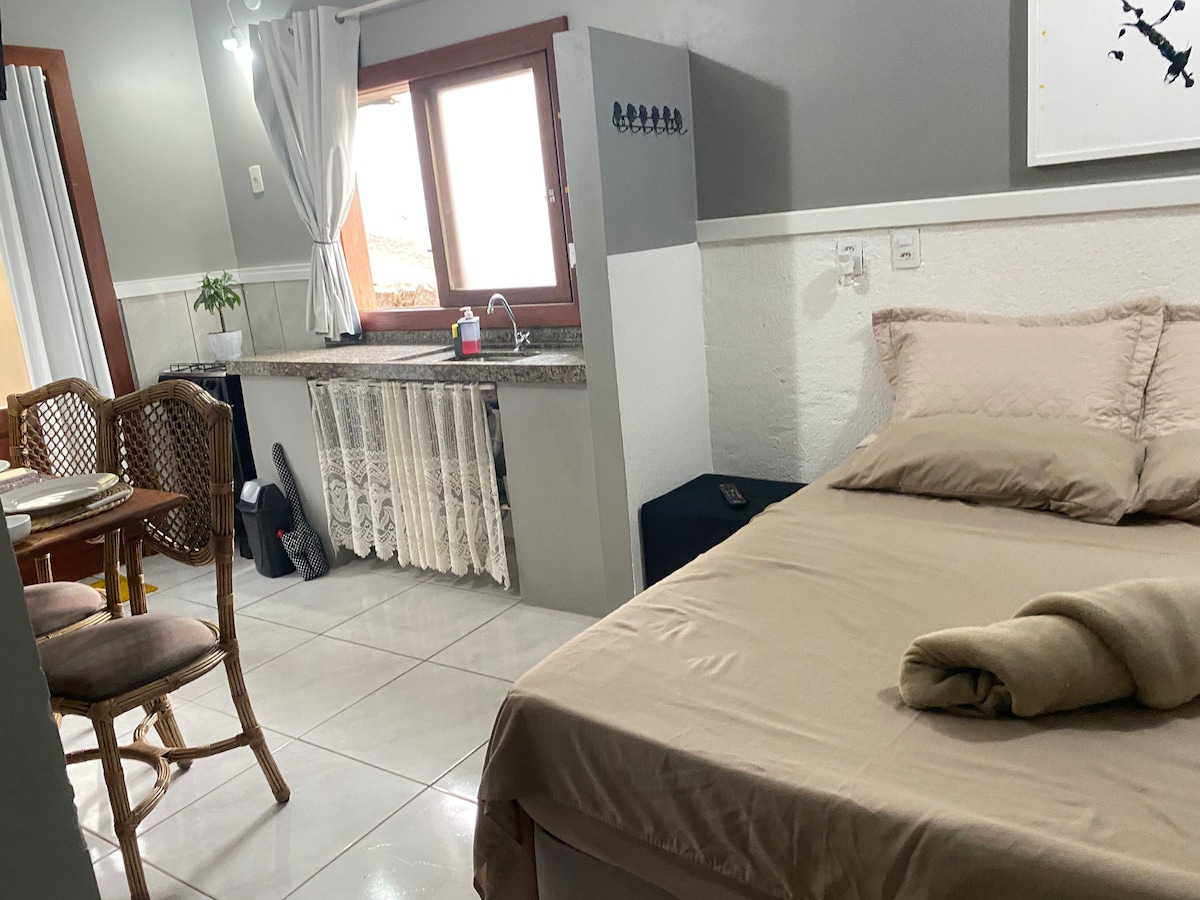 CHALET BOSQUE DA BRAVA Horaires prolongés et flexibles : ♡ Arrivée : à partir de 8h00 ♡ Départ : jusqu'à 18h00 Romantique, confortable et privé ! Équipé, rustique et de style alpin, pour des moments inoubliables ! Idéal pour les couples, mais peut également accueillir confortablement 3 personnes. Accès facile, sécurisé et avec garage couvert. Emplacement privilégié, à 1 200 mètres de 3 belles plages : Brava, Ponta das Canas et Lagoinha do Norte.