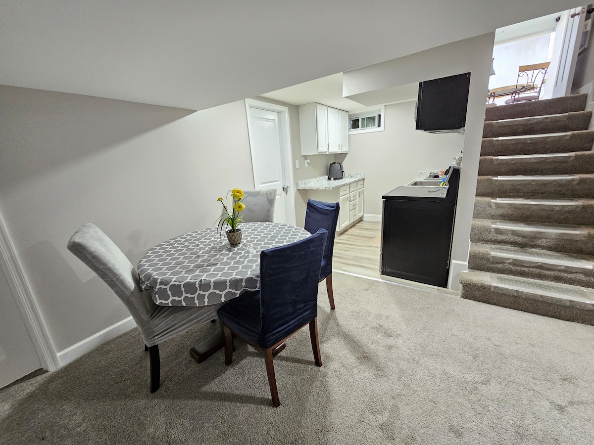 Profitez de l'intimité, du confort et du style de ce spacieux appartement de sous-sol d'une chambre, parfait pour les infirmières en déplacement et les voyageurs d'affaires. Ce logement privé d'une chambre est conçu pour des séjours prolongés avec toutes les commodités de base : cuisinette complète, douche de luxe, télévision intelligente, poste de travail ergonomique et salle de sport à domicile. Quartier paisible à proximité des hôpitaux, parfait pour les travailleurs de nuit qui ont besoin de repos, d'intimité et de fiabilité.