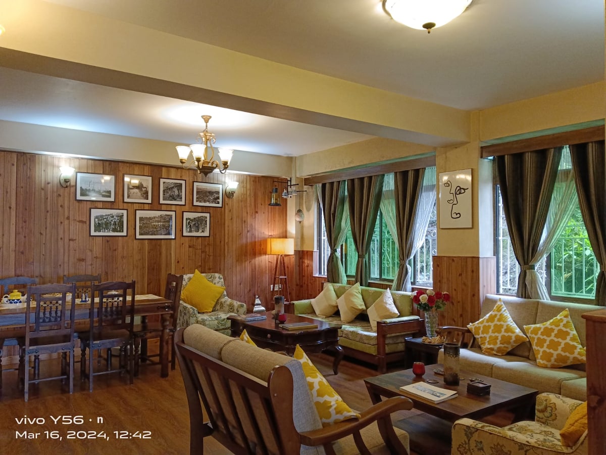 Restez à 2–3 minutes à pied de la gare de Darjeeling et du célèbre Darjeeling Himalayan Railway. Notre appartement paisible de 3 chambres est parfait pour les familles, les amis et les groupes. Profitez de 3 chambres avec linge de maison propre, d'un salon confortable, d'un balcon privé avec vue sur la colline, de toilettes indiennes attenantes, d'une salle de bain occidentale séparée avec eau chaude et d'une cuisine entièrement équipée. À quelques pas des marchés locaux, des restaurants et de Mall Road, offrant confort dans un emplacement privilégié mais calme.