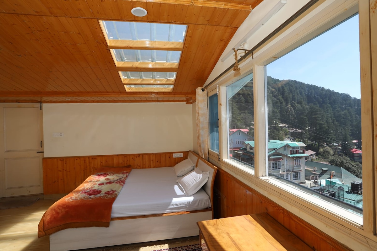 Bienvenue dans notre grenier confortable mais luxueux. Si les vues majestueuses, la décoration artistique et le chic rétro sont votre ambiance, alors cette famille d'accueil est faite pour vous. C'est une combinaison parfaite d'art et de luxe tout en étant super confortable. C'est l'offre la plus luxueuse de Shimla Gypsy. Placée sur le sommet de notre maison avec une vue à 360° et sur le ciel, elle a tout le confort d'une maison de montagne à offrir, au milieu de la nature.