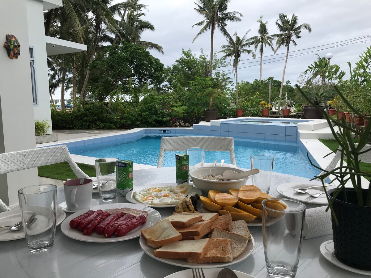 Full Ocean View Spanish Villa exclusivement pour vous et votre groupe. Petite plage privée rocheuse/sablonneuse avec eau claire à 80 pas de la Villa. PISCINE À DÉBORDEMENT étincelante et jacuzzi. TERRAIN PICKLEBALL. À 15 minutes de l'aéroport international de Panglao et de la plage d'Alona. À 12 minutes de la ville de Tagbilaran. Emplacement idéal. Vous aurez accès en exclusivité à la Villa et à la piscine à débordement et au terrain de pickleball. Nous vous retrouverons à la jetée Tag ou à l'aéroport et vous escorterons jusqu'à la propriété. Sécurité 24h/24 et gardien.
