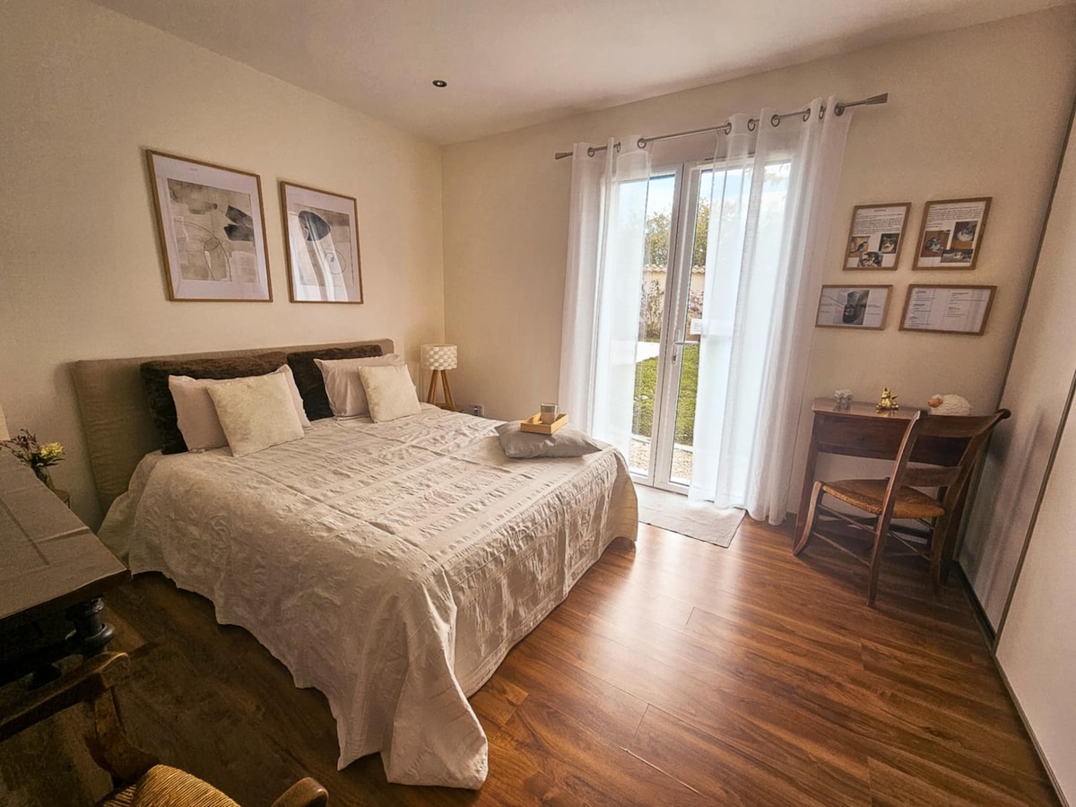 Chambre de 15 m2 avec entrée indépendante, salle d'eau et WC privatifs. Au rez de chaussée d'une maison récente dans un beau lotissement très calme. Situation idéale en cas de fête au château de la Gallée : retour à pied par chemin privé. Cafetière Nespresso et bouilloire à disposition. Vaisselle dédiée à la chambre. Internet wifi. Parking dans le jardin. La maison n'est pas facile à trouver. Je vous enverrai systématiquement un plan par mail la veille. Arrivée autonome.