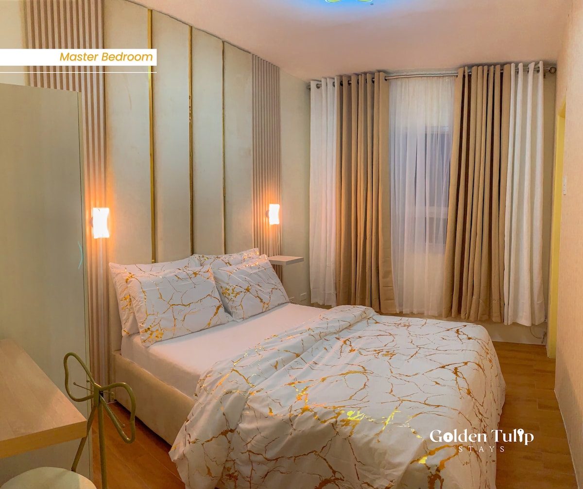 Relax with the whole family at this peaceful place to stay. Amenities: Fully Furnished 2 airconditioned bedrooms with balcony Wi-fi ready 100mbps fiber internet connection 43 inch Google TV with Netflix Free use of Cooking Ware, Utensils, Refrigerator, and Microwave T&B with hot shower and towels 2 Extra Bed foams for 6pax booking Others: Parking Area (with additional fee, 200/night) Swimming Pool (with additional fee, 100/per head) 24/7 Security and Building CCTV