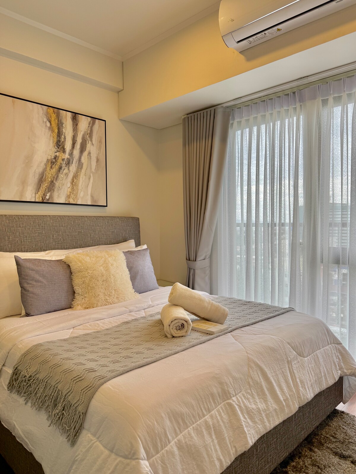 Studio spacieux au design moderne et minimaliste, entièrement meublé, situé au 20e étage des tours Aeon. Utilisation gratuite de la piscine et de la salle de sport pour les voyageurs. Accès très facile aux transports en commun depuis ce logement central, à 3 minutes à pied du centre commercial Abreeza (avec plus de 300 magasins et offrant des services bancaires, des commerces de détail, des restaurants et des divertissements). À 18 minutes en voiture de l'aéroport de Davao City. Équipé d'une connexion Internet haut débit par fibre optique, idéale pour les professionnels en déplacement qui se connectent à un VPN.