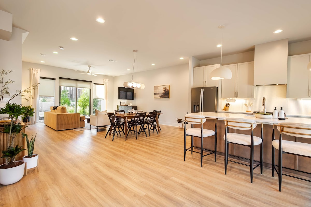 Whisky & Wildflowers est votre retraite privée de style spa 3BR à seulement 5 minutes de Broadway ! Détendez-vous dans la piscine cow-boy, détendez-vous dans le sauna en cèdre ou détendez-vous sur la terrasse arrière couverte. Parfait pour les célibataires, les anniversaires et les escapades de fin de semaine. À l'intérieur, profitez d'une décoration élégante, d'espaces de vie confortables et de tout ce dont vous avez besoin pour passer un séjour agréable. Le jardin est entièrement clôturé avec du gazon, idéal pour l'intimité et les rencontres de groupe. À moins d'un mille de Geodis Park et à proximité des meilleurs endroits.