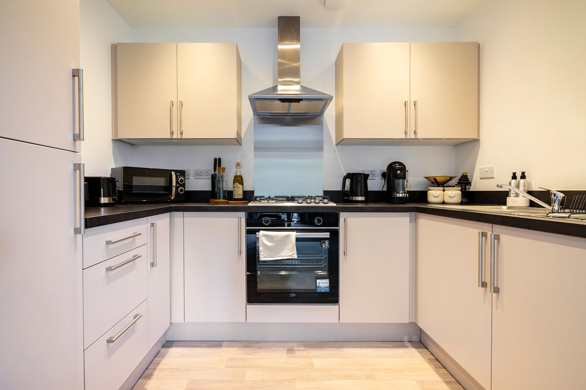 Cet appartement moderne, achevé en 2023, est idéalement situé à proximité du centre-ville d'Édimbourg (10 min) et de l'aéroport (20 min). Dans cet appartement lumineux et aéré, vous trouverez : - De vraies plantes ! - 1 grand lit King Size et 1 canapé-lit King Size - Matelas Emma super confortable, linge de lit à fils de haute qualité et serviettes douces - Machine à café Nespresso - Lave-linge/sèche-linge/ lave-vaisselle - Sèche-cheveux - Télévision connectée 65pouces et jeux de société - Garde-manger avec riz, pâtes, ramen, granola, lait ordinaire et d'avoine - à 15 minutes à pied de la plage