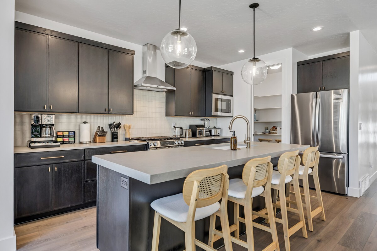 Bienvenue à Townes at Marmalade ! Situé sur le côté nouvellement développé du quartier animé et historique de Marmalade, juste à l'ouest de Capitol Hill, sur la toile de fond industrielle de SLC — à 5 min du City Creek Center, à 9 min de l'aéroport et à 20 min à pied du Delta Center. Cette maison de ville moderne de 2024 dispose de 2 suites principales, d'un bureau, d'une cuisine gastronomique avec garde-manger, d'un garage pour 2 voitures avec chargeur VE et de tout ce dont vous avez besoin pour que votre séjour soit agréable ! Tous sont les bienvenus. Vous êtes ici chez vous !