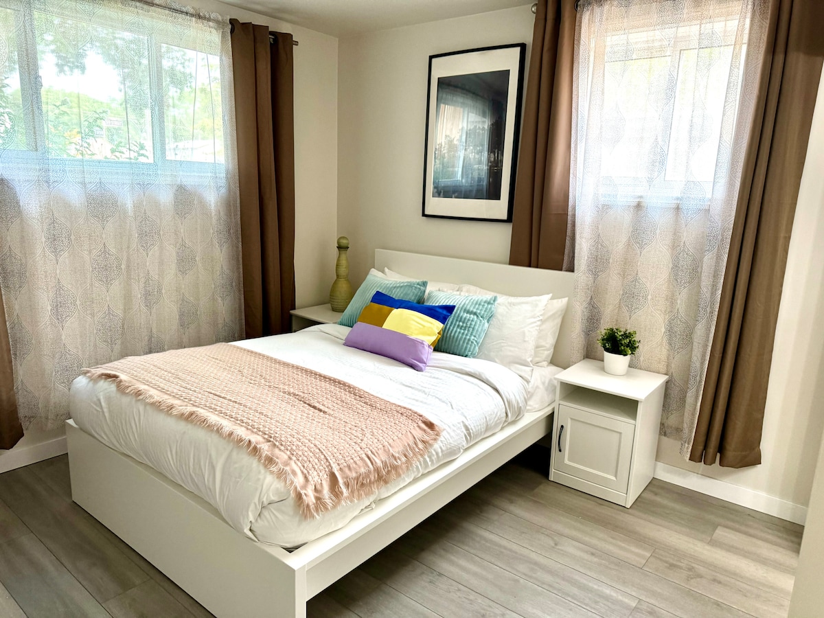 Location spacieuse de maison complète avec confort moderne – sous-sol fini, stationnement gratuit et cour arrière. Maison entièrement rénovée avec des finitions modernes, idéale pour les familles ou les séjours prolongés. Le rez-de-chaussée comprend un salon élégant, une cuisine complète et un coin repas, 2 chambres (queen size + lit double) et une salle de bain complète. Le sous-sol aménagé offre un deuxième salon, une cuisine ouverte avec réfrigérateur, 2 chambres supplémentaires, une salle de bain complète et une buanderie. Spacieux, confortable et parfait pour se détendre après avoir exploré la ville.