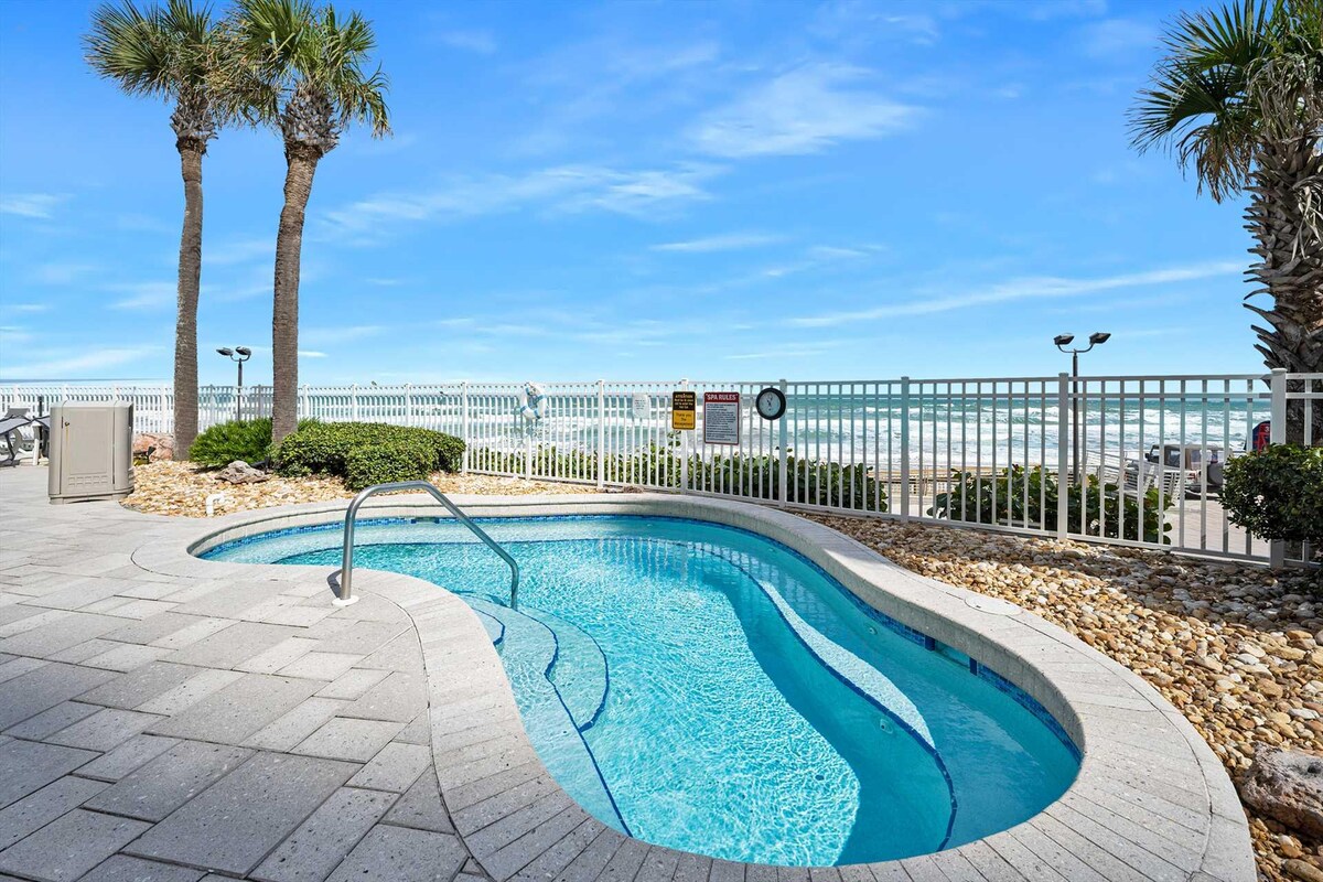 Il n'y a rien de plus thérapeutique que de se réveiller avec un beau lever de soleil. Venez profiter d'un endroit heureux récemment rénové où vous vous sentirez comme chez vous. Cette co-propriété d'une chambre entièrement équipée est en bord de mer au 14e étage et surplombe de grands équipements : plusieurs piscines, une rivière paresseuse de 300 pieds de long, un toboggan aquatique, des jacuzzis et un parc aquatique pour enfants. Pour couronner le tout, il est à côté du Daytona Beach Bandshell, des Ocean Walk Shoppes et d'un cinéma avec des concerts et des feux d'artifice en été.