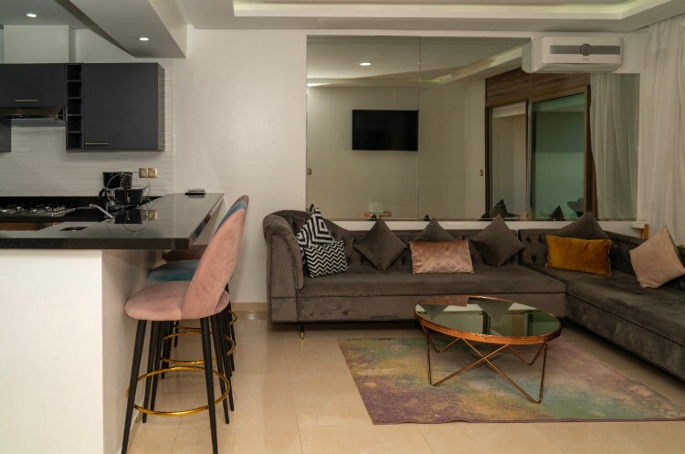 Profitez d'une escapade paisible dans cet appartement moderne à Asilah, avec une superbe vue sur la mer et la piscine. Détendez-vous sur la terrasse privée, restez au frais grâce à la climatisation et connecté avec le Wi-Fi rapide. Idéal pour les couples et les familles, même avec enfants ou bébés—à quelques minutes de la plage et du centre-ville.