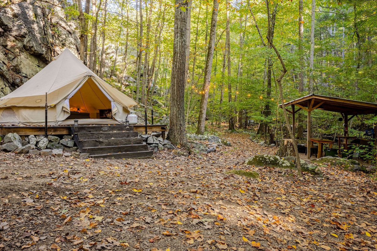 Débranchez et détendez-vous au Blue Mountain Hideaway, une tente de glamping de charme nichée dans les bois près du parc national de Shenandoah et de la rivière Shenandoah. Profitez d'un vrai lit, d'une cuisine extérieure entièrement équipée et de bois de chauffage gratuit. Pas de Wi-Fi, pas de distractions, juste les sons de la nature. Installez-vous confortablement près du feu, savourez des matins tranquilles et reconnectez-vous avec ce qui compte le plus. Apportez votre glacière et vos vêtements, on s'occupe du reste. Parfait pour les couples, les voyageurs en solo et tous ceux qui ont envie d'un endroit tranquille pour se ressourcer.