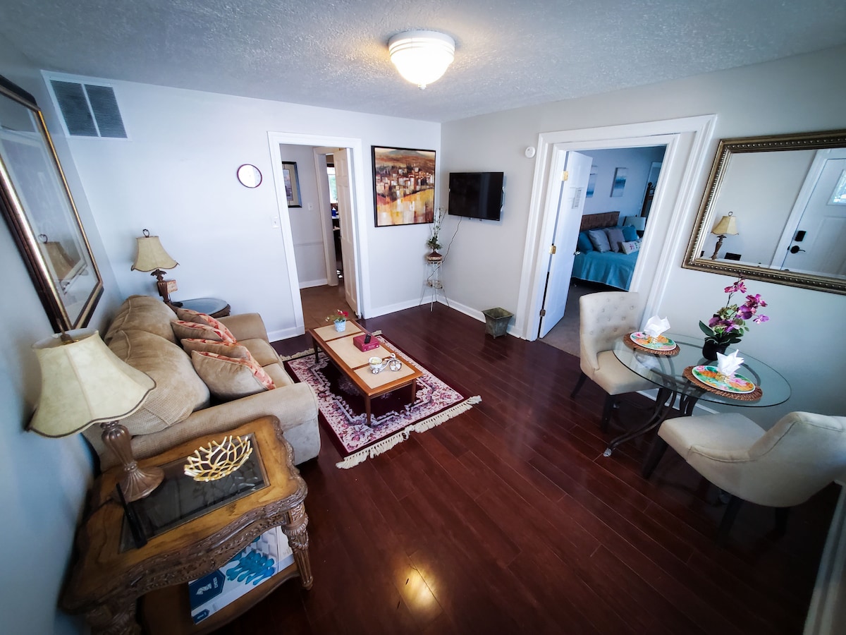 Bienvenue à la Casa de Cardinal ! Niché au cœur de Muncie, ce logement offre tout le confort et le luxe d'un appartement d'une chambre. Que vous soyez en ville pour affaires ou que vous soyez en ville pour rendre visite à votre famille et à vos amis, Casa de Cardinal est une retraite très charmante et relaxante pour que vous vous sentiez comme chez vous. Cet appartement dispose d'un salon séparé, d'une grande chambre avec 2 chambres de grande taille, d'une cheminée, d'un coin bureau, d'une cuisine entièrement équipée, d'une salle de bain avec douche debout et d'une buanderie.