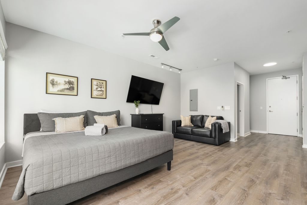Un studio confortable avec des plafonds de 10 pieds à pied de High Street dans le Short North. Voici un excellent appartement pour accéder aux événements de l'État de l'Ohio, Express Live, Nationwide Arena, le Centre des congrès ou Goodale Park. Lorsque vous rentrez à la maison, profitez de la détente sous le porche arrière. À l'intérieur, travaillez à un bureau près de la fenêtre ou détendez-vous sur le canapé ou le lit queen et regardez la télévision.