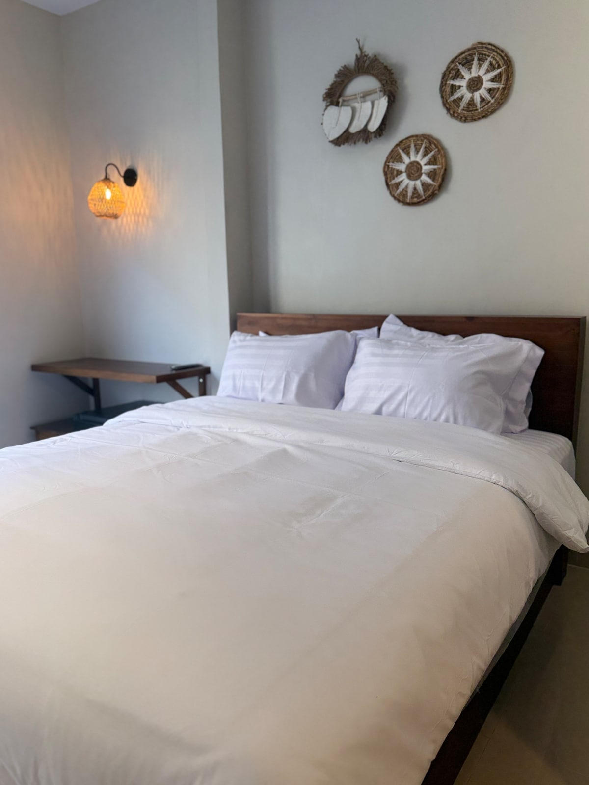 Notre studio utilisait une usine de vêtements de mode. Comme notre échelle d'usine est devenue plus petite , nous avons un grand espace vide au dernier étage de notre usine à vêtements. Nous changeons donc la fonction et transformons en studio . Nous avons aménagé les chambres avec toute notre passion et des meubles artisanaux sur mesure mélangés avec du bois de teck et du fer à repasser pour donner un aspect industriel, mais nous nous sommes quand même sentis accueillants et confortables. L'emplacement est très stratégique (région de Renon), à proximité de la plage de Sanur, de l'hôpital, de Tol Bali Mandara et de Renon Yard.