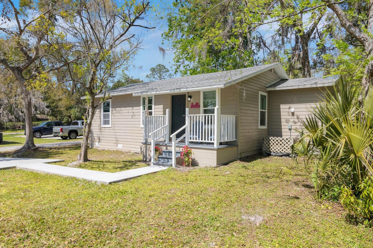 NEWLY RENOVATED | WALK TO UF | PRIVATE STUDIO Stay in a stylish mid-century modern studio just 0.5 miles from the University of Florida—perfect for game days, campus visits, and graduations. Located 2 miles from UF Health Shands and HCA hospitals, ideal for medical stays. This private, detached guest house features modern finishes, natural light, a kitchenette, mini fridge, Smart TV, fast WiFi, and workspace. Quiet, central location near UF and downtown.