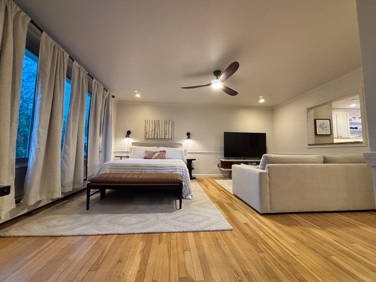Détendez-vous avec style dans ce spacieux studio à aire ouverte avec cuisine complète Situé au cœur de Manchester, vous êtes à seulement 5 minutes du centre-ville et d'Elm Street, à proximité des restaurants, des boutiques, des parcs et des sentiers ferroviaires. Vous adorerez le lit queen moelleux, le coin salon confortable avec une grande télévision intelligente, le coin repas pour les repas ou le temps de l'ordinateur portable, et une cuisine de taille normale. Que vous voyagiez pour le travail, pour une escapade de fin de semaine ou pour un séjour plus long, ce logement offre l'équilibre idéal entre confort et commodité.