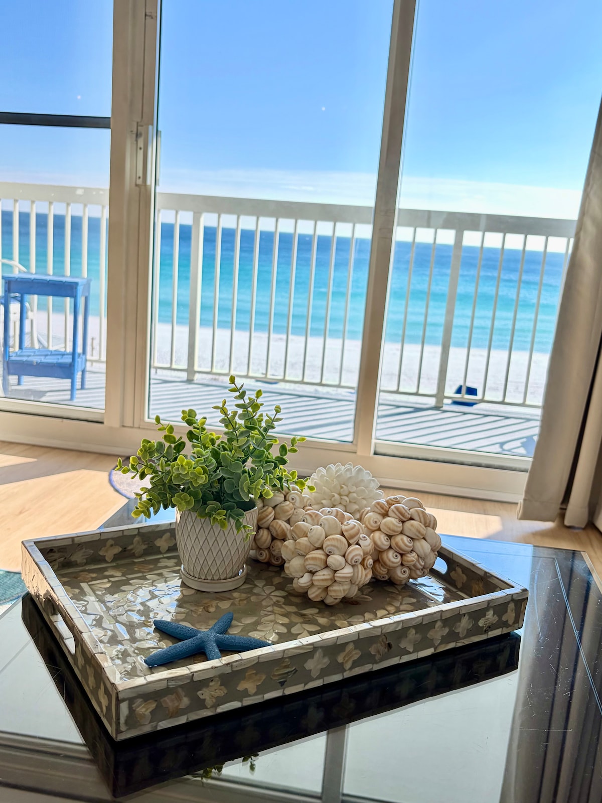 Condo récemment rénové d'une chambre et de deux salles de bain avec lits superposés intégrés. Situé côté plage au 19e étage avec vue panoramique imprenable sur les eaux émeraude et les plages de sable blanc immaculé du golfe du Mexique. Cuisine entièrement équipée avec de nouveaux plans de travail en granit et des appareils électroménagers en ardoise. Internet haut débit rapide et fiable partout. Les équipements du complexe hôtelier comprennent une grande piscine et un jacuzzi, un bar tiki en bord de mer servant des boissons glacées et de la bière. Un fabuleux café qui sert un petit-déjeuner chaud, des pizzas, des sandwichs et des salades.