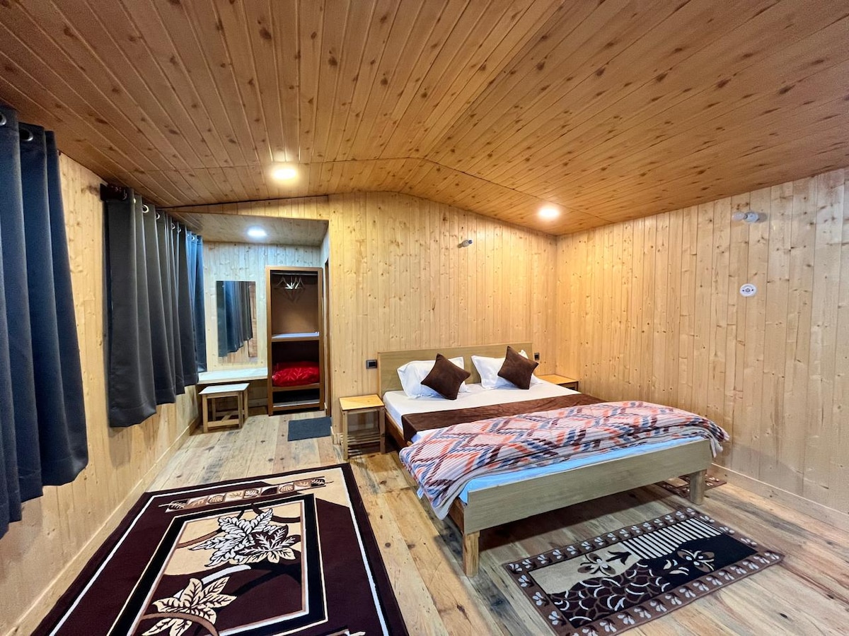 Une intimité de cadre, un lever de soleil sur le balcon, des coins tranquilles. Conçu pour les couples qui aiment les matins tranquilles. Prêt pour le travail, prêt pour l'alimentation, téléphone en option. Raya se sent bien et proche. Le balcon est le héros ici, le thé et la première lumière chaque jour. Des intérieurs simples, du bois chaleureux et une vue dégagée donnent le ton. Le Wi-Fi est rapide, l'alimentation est sauvegardée et il y a un espace de travail bien rangé si vous en avez besoin. Le temps de trajet depuis Delhi est de neuf à dix heures. Kathgodam est la gare la plus proche. Stationnement gratuit. Idéal pour les couples et les anniversaires.