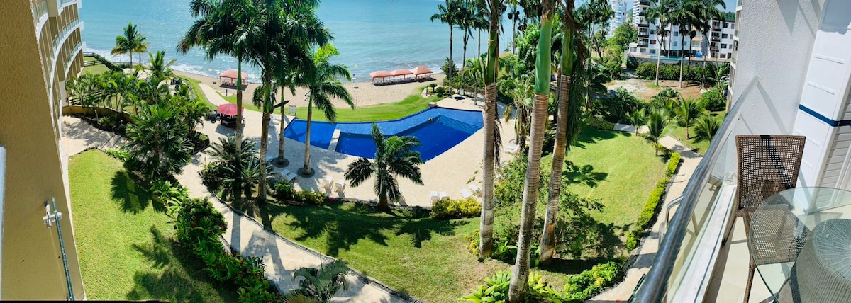 Créez des souvenirs inoubliables dans ce logement unique et familial. Excellent appartement face à la mer avec une vue incroyable 3 chambres, 2 salles de bains, meublé pour vos vacances ! pour 6 personnes au top de Tonsupa - Esmeraldas : DIAMOND BEACH ! ! ! Wi-Fi espace commun SmartTV, tout pour que vos vacances soient spectaculaires ! . Piscines 🏊♀️- hydromassage - courts - gymnase 🏋️♀️- ascenseur - parking - front de mer 🌊 - entrée privée à la plage 🏝