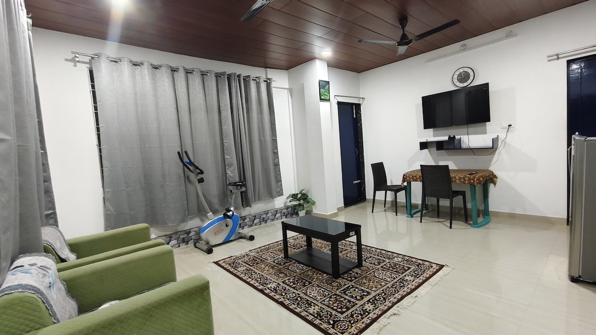 Cet appartement 2BHK entièrement meublé, hébergé par Sugandha & Sugam, est parfait pour les familles ou les groupes. L'appartement est équipé du Wi-Fi et d'un espace de travail dédié. Si vous êtes un passionné de musique, vous pouvez profiter de la salle de répétition avec des instruments de musique, ou de la petite bibliothèque si vous aimez lire. Nous avons quelques jeux d'intérieur pour divertir les enfants. Nos clients peuvent accéder à une télévision connectée, de l'eau potable RO/UV, une cuisine entièrement équipée avec un réfrigérateur, un lave-linge et un parking gratuit.