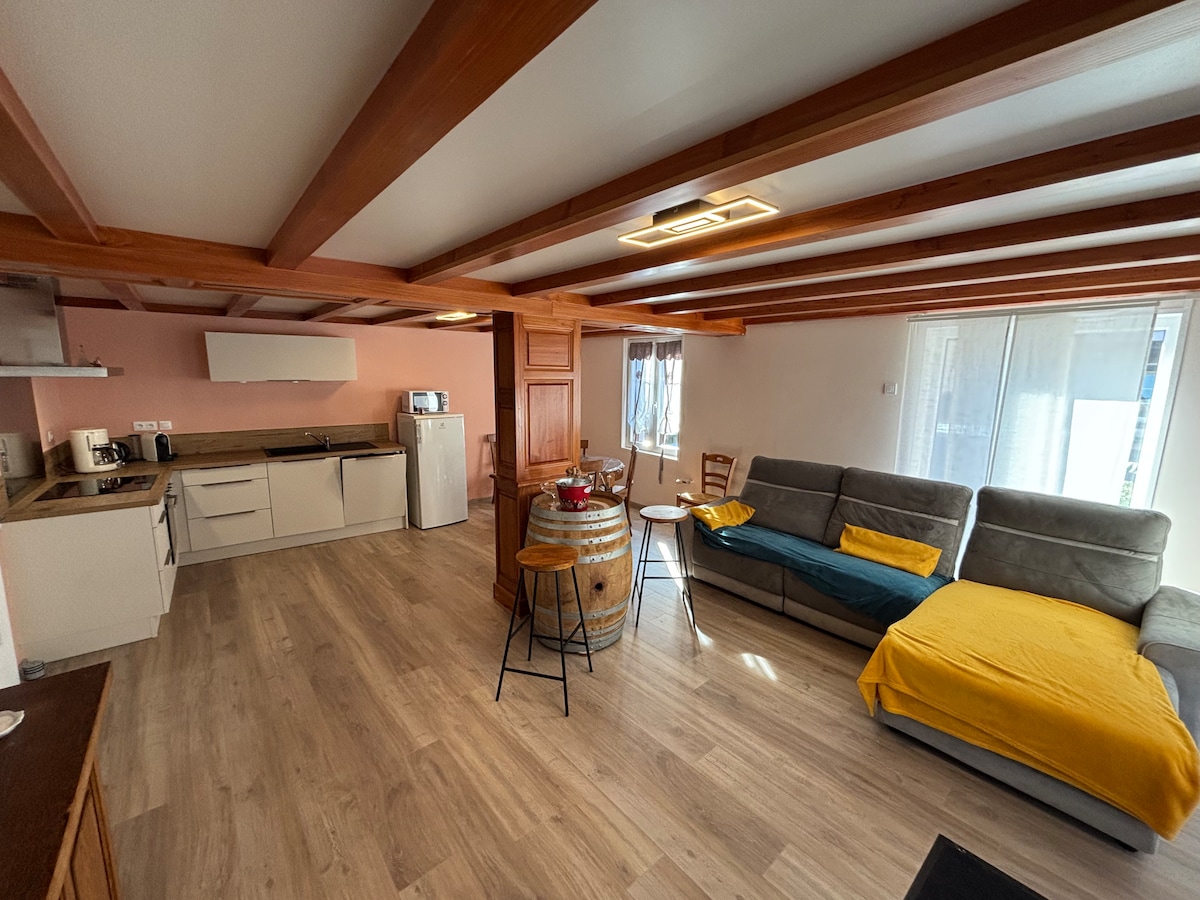 Bienvenue chez Kam à Scherwiller. Situé en plein cœur de la route des vins, avec une belle vue sur le château de l’Ortenbourg. Tout l’appartement est entièrement rénové à neuf. Que vous soyez en voyage d’affaire ou en vacances, vous serez faire de votre séjour un moment mémorable avec toutes les activités à proximité.