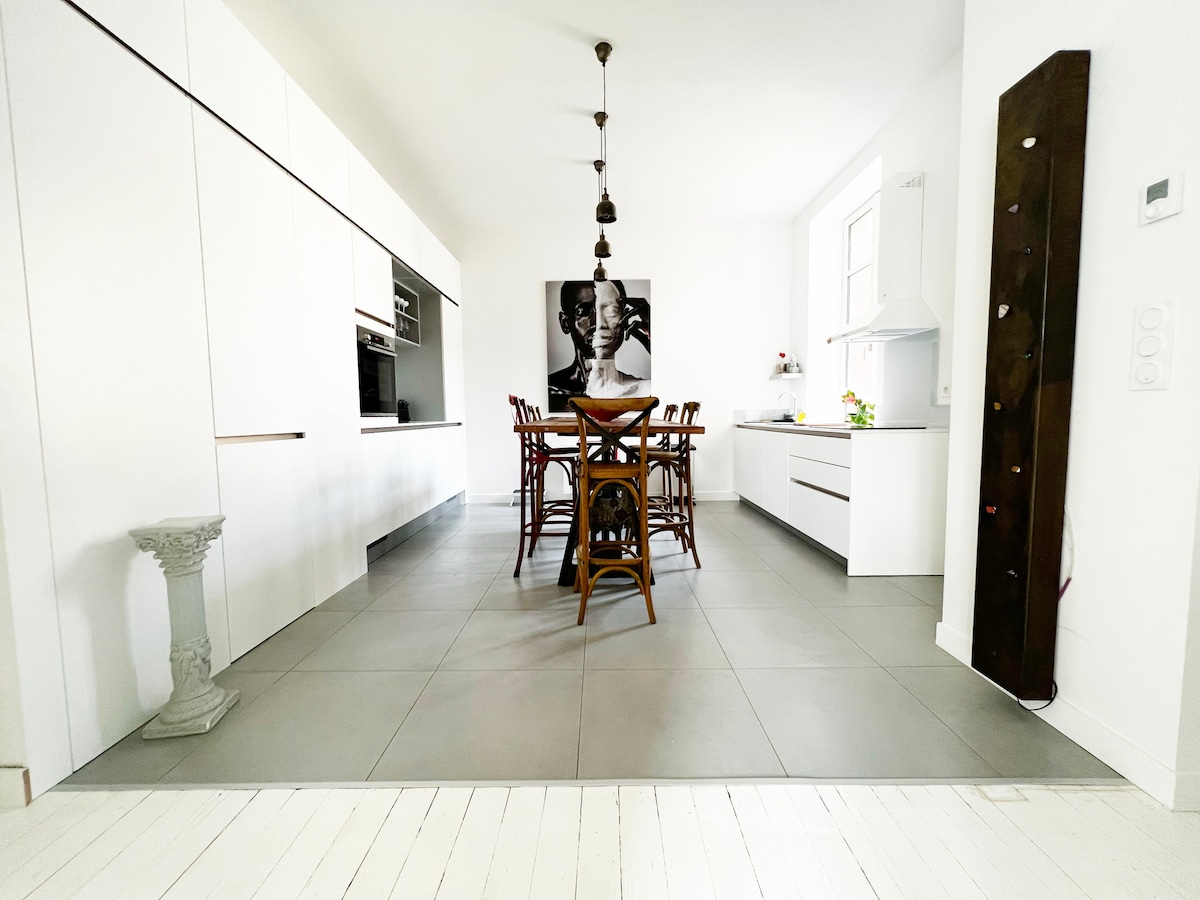 Dans un écrin de verdure & de calme d'un magnifique château du XVe siècle située à l'entrée de notre belle cité médiévale Dinan, vous séjournerez dans un appartement loft de 54m2 au rdc du batiment principal. Vous découvrirez sa magnifique cheminée monumentale et vous tomberez sous le charme de cet édifice authentique, chargé d'histoire avec tout le confort moderne au coeur d'un beau parc de 3 hectares avec son étang à seulement 15 min à pieds du centre historique ou 3 min en bus gratuit.