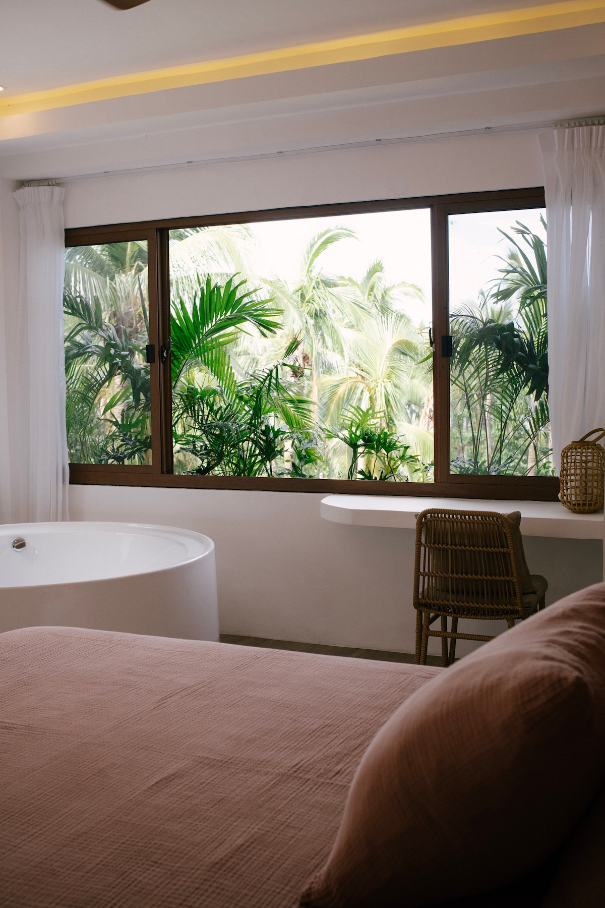 A design-forward villa perched in a canopy of palm trees with elevated views of the ocean. As you step inside the high vaulted ceilings you are immediately welcomed to an expansive chef's kitchen and dining island. Every window frames nature into art. This isn't just a place to sleep. It's a place to be immersed in the landscape, protected by the mountains, and embraced by the elements. At Palm Villa, you can exhale, shake off the city, and experience laid-back luxury at the jungle's edge.