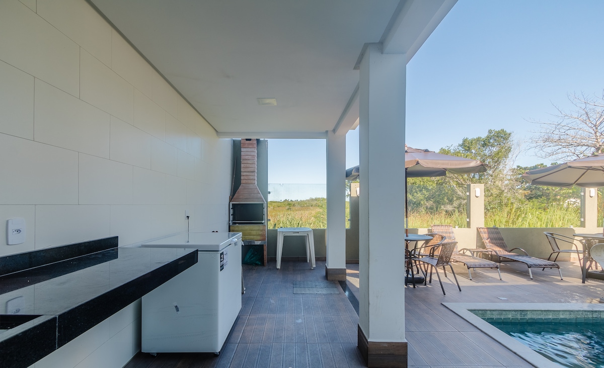 Venez profiter d'un endroit confortable et élégant, parfait pour se détendre après une journée incroyable sur les plages de Porto Seguro. Profitez de moments agréables en famille et entre amis, dans une ambiance détendue, que ce soit en discutant, en faisant un délicieux barbecue ou en vous relaxant dans la piscine! Tout cela est à seulement 480 mètres de la plage de Taperapuãn, avec un grand centre commercial et gastronomique autour, offrant toutes les commodités pour que vous puissiez vous reposer facilement et en profiter au maximum!