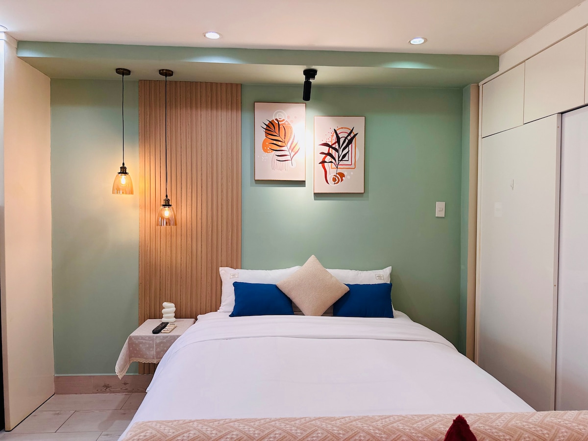 ** SERVICE DE RAMASSAGE DEPUIS L'AÉROPORT DISPONIBLE** Séjournez dans notre élégante suite de 50 m² à Serenity Sky Villas, District 3, qui offre un confort moderne à un prix abordable. Bienvenue dans un appartement d'une chambre bien conçu où le style minimaliste rencontre la vie confortable. 🛌 Détendez-vous dans un lit queen size avec des draps haut de gamme et profitez d'un espace parfait pour vous détendre, vous ressourcer ou travailler à distance, le tout dans un cadre serein et élégant.