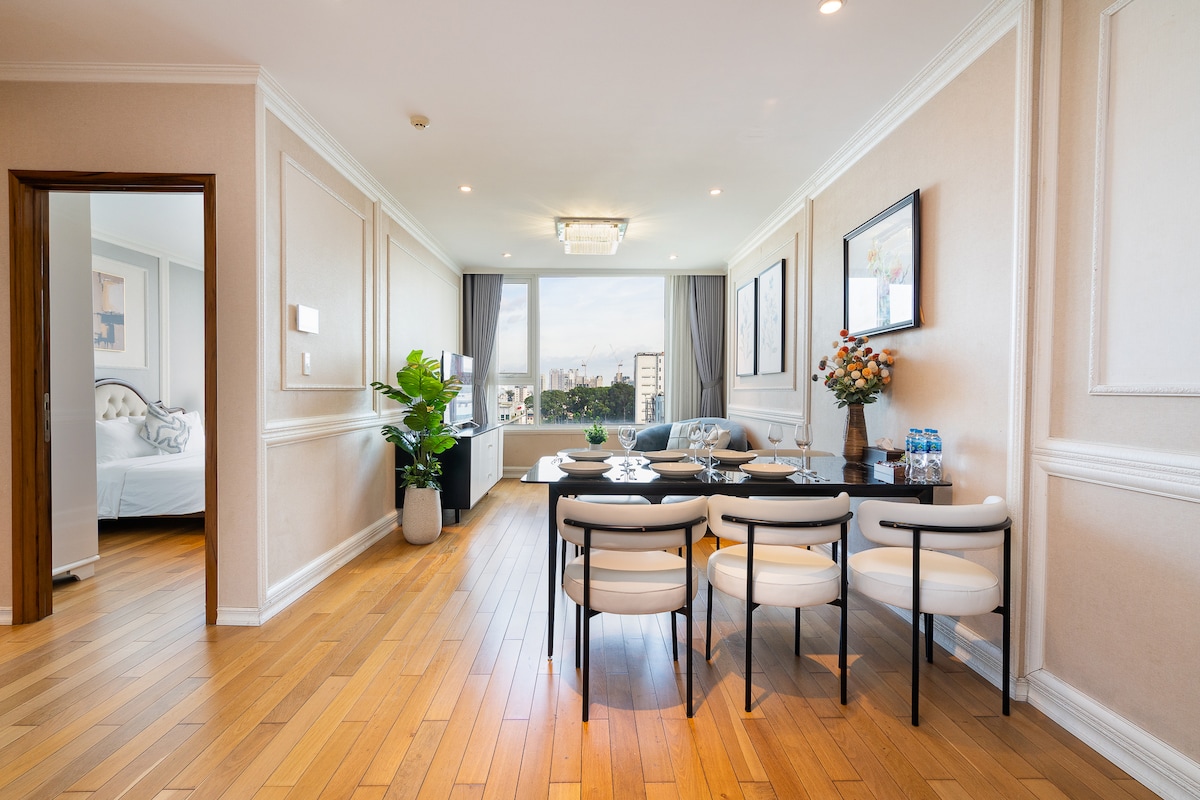 L'immeuble de luxe Leman est un appartement à l'architecture européenne et moderne situé en plein centre-ville. C'est un endroit idéal pour les visiteurs qui veulent explorer tous les quartiers de la ville. Vous pouvez facilement trouver des restaurants orientaux et occidentaux, des magasins, des supermarchés, des musées, des spas, des bars à distance de marche ainsi qu'à quelques minutes du marché de Ben Thanh, de la cathédrale, du palais de l'Indépendance, etc. Toutes les commodités nécessaires sont fournies, entièrement équipées dans la maison afin que vous puissiez cuisiner pour vous-même.