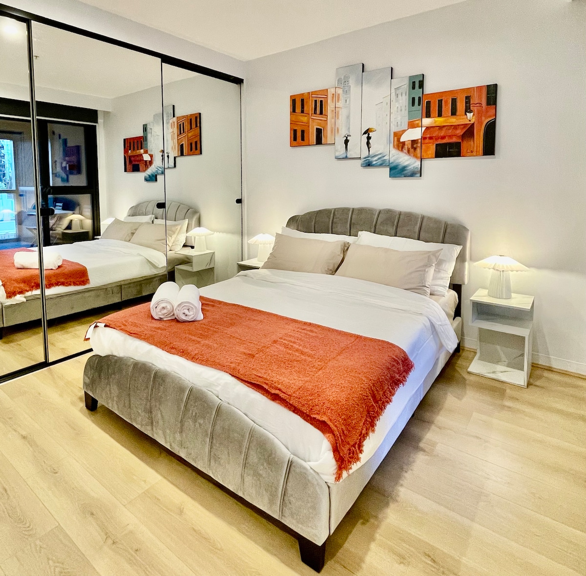 Remarque : un projet de construction en cours à côté de la propriété peut causer des nuisances sonores pendant votre séjour. Tenez-en compte au moment de faire la réservation. Appartement au bord de l'eau à Docklands | Emplacement privilégié 🚆 Transport : accès rapide au tramway et à 10 min du quartier des affaires 🍽 Restaurants : cafés et épiceries à proximité 🏀 Loisirs : 2,5 km au bord de l'eau, parcs et pistes cyclables 🛍 Shopping : promenez-vous dans les magasins et la bibliothèque locaux 🌿 Remarque : construction sur le front de mer ; insonorisée Parfait pour les affaires et les loisirs. Réservez maintenant !