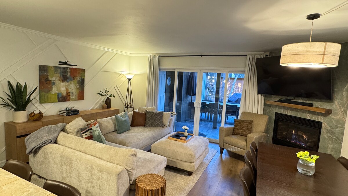 Maison de ville entièrement rénovée avec 4 chambres et 2 salles de bain avec 2 places de stationnement devant l'unité (stationnement supplémentaire disponible). Piscine et bain à remous (partagés). Chasse-neige, y compris La disponibilité des piscines, du spa et du sauna est soumise à l'horaire saisonnier de l'association des propriétaires (généralement, les piscines sont fermées à l'automne et en hiver, le spa et le sauna sont ouverts toute l'année). Une taxe de 12 % sur le comté sera facturée dans le montant de la réservation. Les séjours de plus de 30 jours sont exonérés.