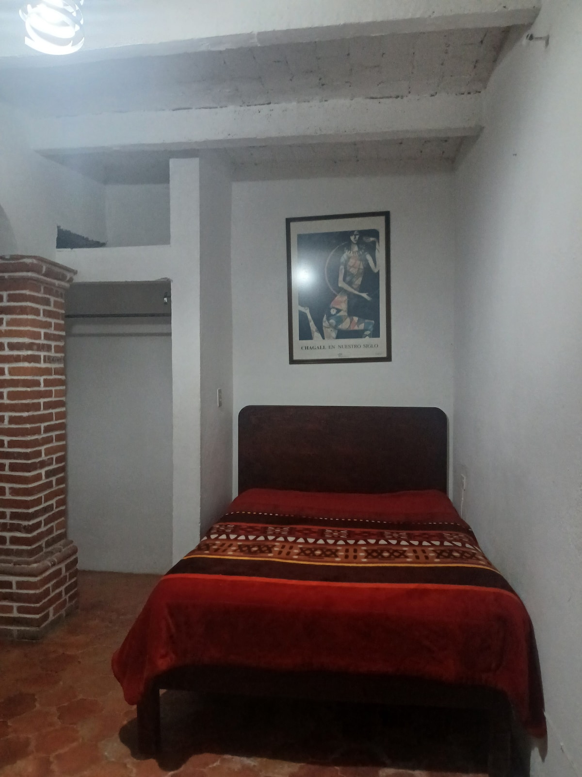 Dans le centre historique de la ville de San Miguel de Allende, à seulement un pâté de maisons du jardin principal, à proximité des restaurants, musées, écoles d'art et supermarchés, deux chambres confortables idéales pour une famille. Chambre principale avec lit double et 2e chambre avec deux lits simples partagent une salle de bains avec de beaux vitraux et lumière naturelle. Le logement est situé à l'intérieur d'une maison coloniale au deuxième étage avec accès à la terrasse, excellent emplacement.
