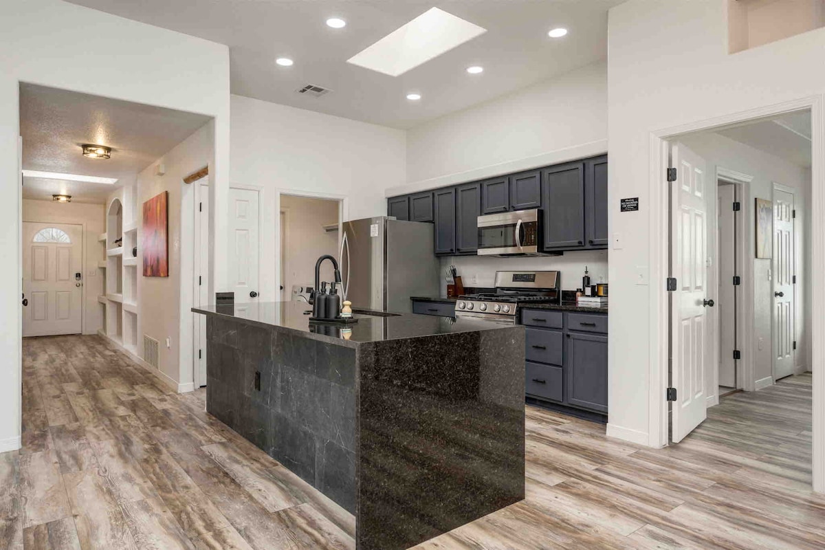 Il s'agit d'une maison de ville rénovée de 2 chambres et 2 salles de bain, située au centre, très pratique pour l'autoroute 70, un trajet direct vers le parc national de White Sands et Main Street, un accès facile au centre-ville de Las Cruces, où se trouve le marché fermier de Las Cruces. Cette maison de ville dispose d'un plan d'étage ouvert et divisé, d'une cuisine complète avec tout ce dont vous avez besoin pour préparer un repas, d'un lave-vaisselle, d'un micro-ondes et d'une cuisinière à gaz. Vous trouverez également un bureau et un coin salon extérieur. La propriété est située à proximité du charmant parc 4-Hills.