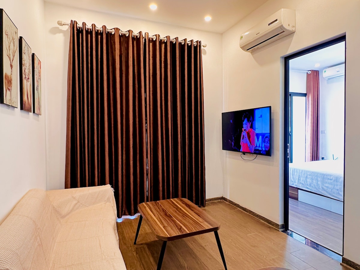 Ce bel appartement à Tay Ho est situé au 6e étage de notre nouvel immeuble - Hanoi Housing 32. Il dispose d'une chambre, d'une salle de bain et d'un salon-cuisine ouvert. Il est joliment conçu. Mobilier et équipement moderne complet fourni. Le plancher en bois aide à rendre l'appartement facile à nettoyer. De plus, l'emplacement du bâtiment est à distance de marche des épiceries, restaurants, boutiques, bars, pubs. Veuillez noter qu'il n'y a pas de lumière naturelle ni de balcon dans l'appartement.